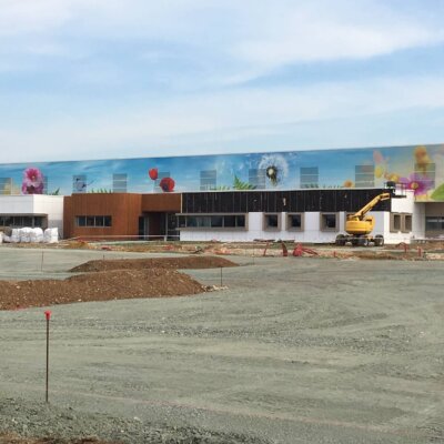 Si vous passez dans la zone industrielle de Périgny près de La Rochelle… Vous ne pourrez pas la louper : la nouvelle usine « cosmétique » de Léa Nature en habillage XXL ! Quelques centaines de m² imprimés et posés par les équipes de Récréation. Tout a été Made in ici !